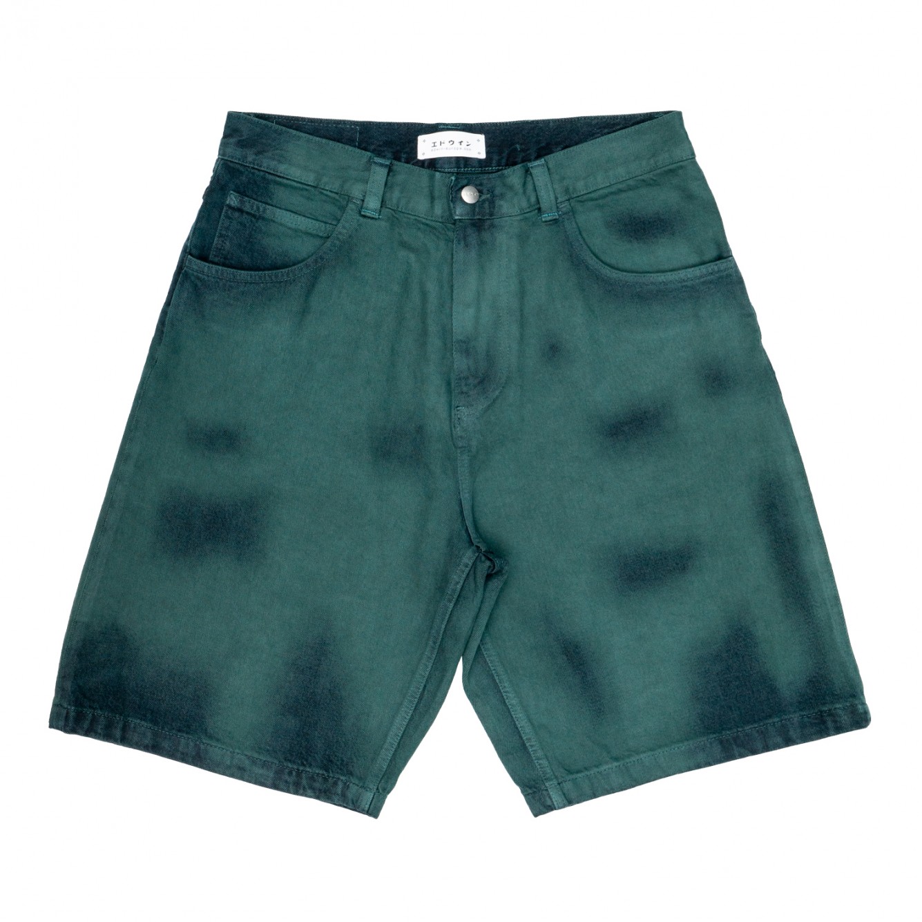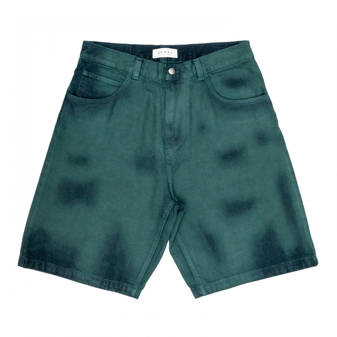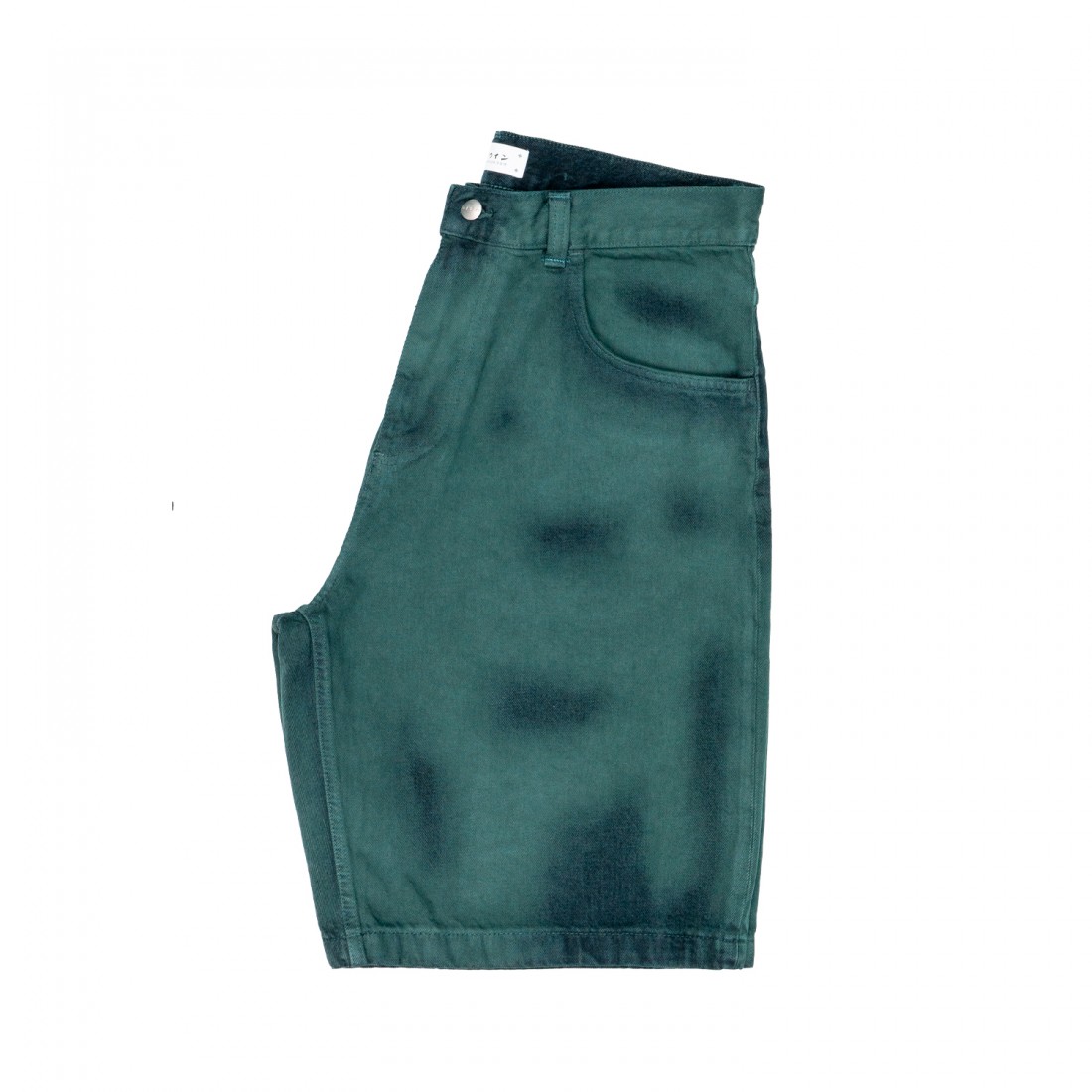 I Worker Short hanno una vestibilità ampia, sono realizzati in denim Arctic Blue Denim da 14,6 once trattato con un'esclusiva finitura Emerald Overdyed, sono dotati di una pratica patta con cerniera e dettagli esclusivi come la toppa in poliuretano e le finiture in metallo argentato.