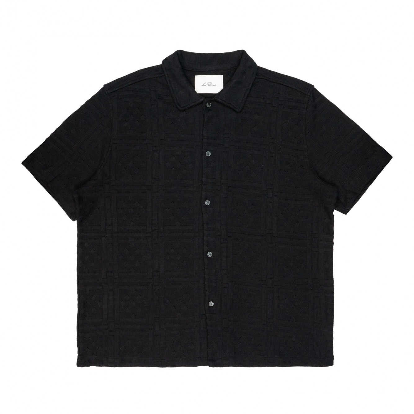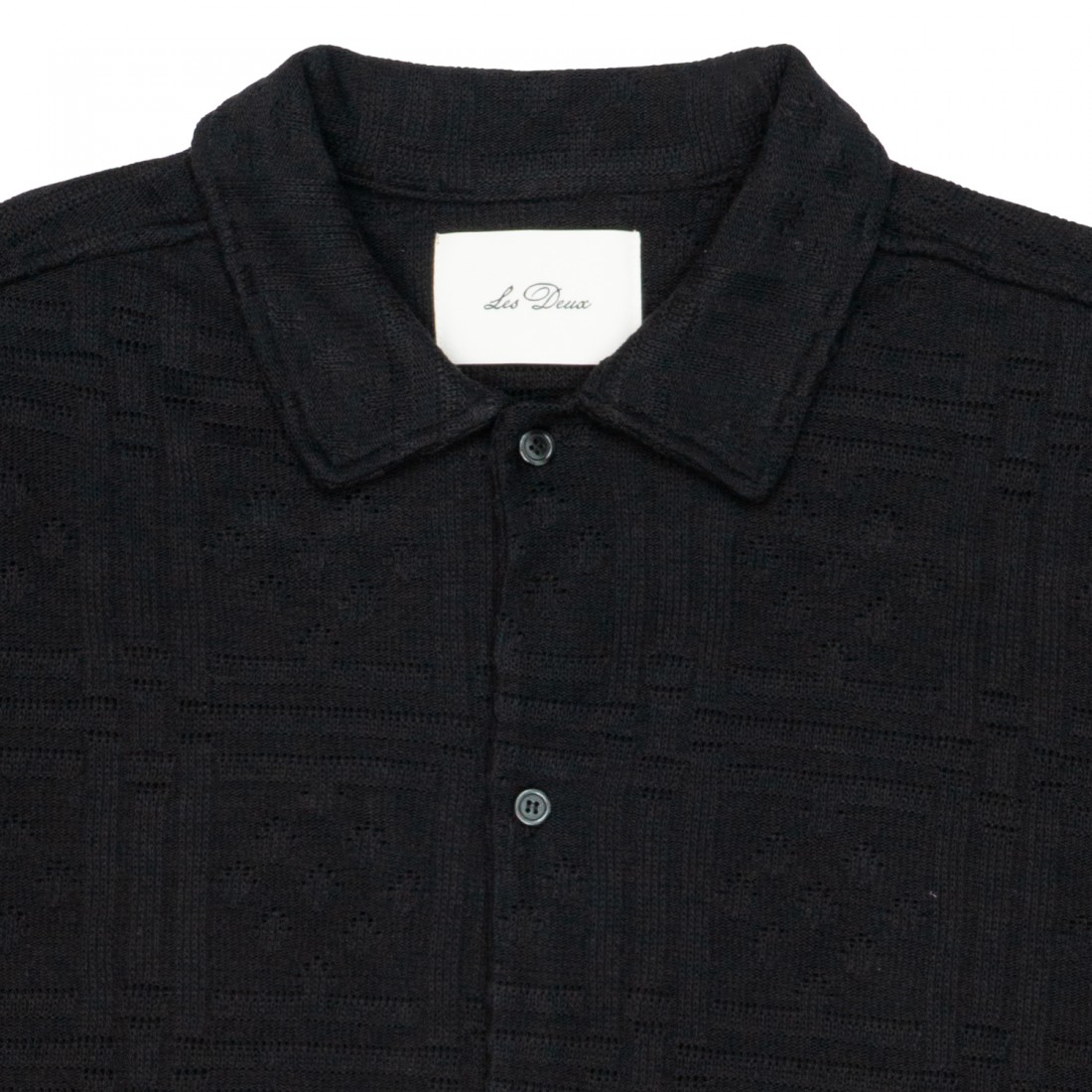 Un fresco modello a maniche corte realizzato in jersey traforato per leggerezza e texture. Il modello Hector è rifinito con un colletto casual e bottoni effetto madreperla tono su tono.