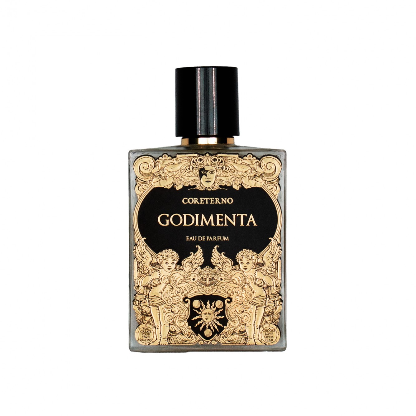 Da un blocco grezzo di materiale, l'artista vede già l'opera finale, e Godimenta è scolpita come una scultura. Zenzero e bergamotto sono tagliati con linee pulite, emanando un'energia forte e vivace. Intorno a loro, limone e menta formano curve morbide e fluide, fresche e piacevoli. Lampone e gelsomino si inseriscono come piccole incisioni nelle venature di resina dell'abete bianco. La rosa metallizzata è una forma solida e brillante, quasi affilata alla vista. L'ambra si diffonde in una base morbida e arrotondata, levigando ogni asperità. Infine, i legni – sandalo, cedro e guaiaco – insieme al muschio, conferiscono alla scultura una calda luminosità e una finitura liscia e sensuale che invita al tatto e al godimento.