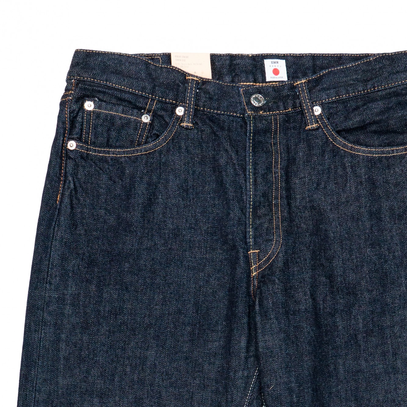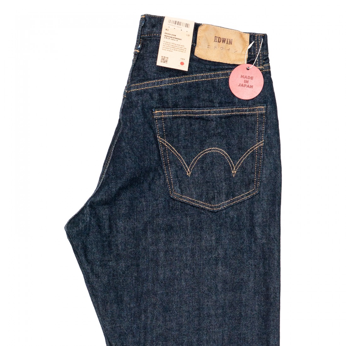 La collezione "Made in Japan" offre un prodotto unico, senza concorrenza diretta in termini di qualità, prezzo e provenienza "Made in Japan". Rispettando gli aspetti più tradizionali della collezione di denim giapponese di alta qualità, i jeans EDWIN Regular Straight sono realizzati in tessuto denim Kurabo Recycle Red Selvage da 14 once.
